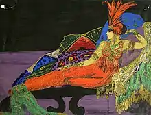 Tórtola Valencia was also a "pioneer Spanish feminist of the 20th century".[5] Being gay and having leftist ideas, Tórtola Valencia was jailed at the end of the Spanish Civil War. In 1928, she met Magret Angeles-Vila and they were inseparable thereafter. She danced for the last time in 1930 in Quito. She began painting in Barcelona where she died in 1955 and is buried at Poblenou Cemetery.[6]