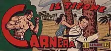 Carnera is an Italian comic book series created by publisher and writer Tristano Torelli and graphically rendered by illustrator Mario Uggeri. It originally run from 1947 until 1950.