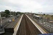 Carnoustie railway station is a railway station which serves the town of Carnoustie, Angus, Scotland. It is sited 10 miles 33 chains (16.8 km) east of the former Dundee East station, on the Dundee to Aberdeen line, between Golf Street and Arbroath. There is a crossover at the south end of the station, which can be used to facilitate trains turning back if the line north to Arbroath is blocked.[3] ScotRail manage the station and provide almost all services.