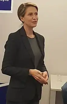 On February 4, 2018, she declared her candidacy for the leadership of the Progressive Conservative Party of Ontario by releasing a video online.[38] Mulroney has the most support from the federal Conservative caucus with 10 members.[39] She was supported by at least four former Patrick Brown advisers: PC campaign chair Walied Soliman, ex-campaign manager Andrew Boddington, ad guru Dan Robertson, and strategist Hamish Marshall, the former director of controversial[40] website The Rebel Media and the Conservative Campaign Chair for the 43rd Federal Election.[41] Her campaign vice-chair was Derek Vanstone, Stephen Harper's former deputy chief of staff and a former Air Canada executive.[42][43][12]