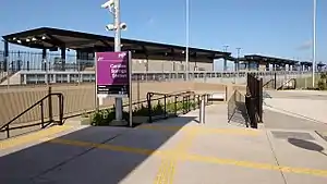 Caroline Springs station has one island platform with two faces. It is served by V/Line Ballarat and Ararat line trains.[19]