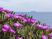 Carpobrotus acinaciformis (commonly known as Elands sourfig, Elandssuurvy or Sally-my-handsome) is a succulent perennial of the family Aizoaceae, native to South Africa.