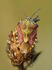 Both the adult bugs and their nymphs are polyphagous. Adults mainly feed on juices of Cirsium arvense and nectar of Leucanthemum vulgare.[3]