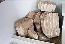 The content of the "chapel Cintas' discovery topheth by Pierre Cintas in 1947, is the subject of its own window. Two foundation deposits containing mostly ceramics were discovered, one located at the base of a wall and the other called "hideout" was under the floor of a small vaulted room.[8]