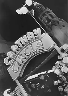 The Carthay Circle Theater opened at 6316 San Vicente Boulevard on May 18, 1926, with a showing of The Volga Boatman (1926),[1] and was considered developer J. Harvey McCarthy's most successful monument, a stroke of shrewd thinking that made a famous name of the newly developed Carthay Center neighborhood[2][3] in Los Angeles, California.[4] (McCarthy's development was called Carthay Center—an anglicized version of his last name.) The Carthay Circle Theater became the focal point of Carthay Center, and Carthay Circle became the neighborhood's official name.[5]
