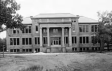 Page, Adolphus Jones, and Rufus Jones established Cary Academy, a private boarding school later known as the Female Institute and Cary Female Academy.[5][20][23] The two-story school was built in 1870 on Page's land at the end of Academy Street with lumber milled on-site by Page.[5][19][20] Other additions to the town included Page's tobacco warehouse, First Methodist Church, First Baptist Church, and the Cary Colored Christian Church (the latter on land donated by Page), along with two free schools for whites and two free schools for blacks.[20]