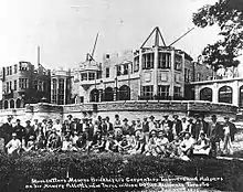 The city seized Casa Loma in 1924 for unpaid taxes, and for years, the building was left vacant.[7] In the 1930s, CFRB broadcaster Claire Wallace spent a night at Casa Loma to gather material for a story about ghosts and supernatural phenomena, and she later broadcast an appeal to save the building from demolition.[8] Her broadcast was heard by the vice-president of a local Kiwanis Club,[8] and subsequently Casa Loma was leased in 1937 by the Kiwanis Club of West Toronto, later the Kiwanis Club of Casa Loma (KCCL), which began operating the mansion under a sole-source contract as a tourist destination.[7]