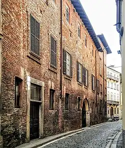 The palace is one of the oldest examples of aristocratic residential architecture in Milan: in fact, the building dates back in its primitive forms, most of which have been preserved on the outside, to the 13th century. On the contrary, the interior was remodelled in the 17th century.[1]