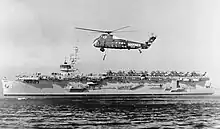 The Casablanca-class escort carrier was a series of escort carriers constructed for the United States Navy during World War II. They are the most numerous class of aircraft carriers ever built. Fifty were laid down, launched and commissioned within the space of less than two years – 3 November 1942 through to 8 July 1944. These were nearly one third of the 143 aircraft carriers built in the United States during the war. Despite their numbers, and the preservation of more famous and larger carriers as museums, none of these modest ships survive today. Five were lost to enemy action during World War II and the remainder were scrapped.[1][2]