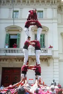 The best human towers structures ever built by the Castellers de Sarrià before its breakup in 2005 were the pillar of 5 (only assembled) and the 2 by 6.