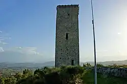 The castle was sold in 1257 to the town of San Severino by Guglielmo, Bishop of Camerino. It is located near the church of Santa Maria Annunziata. The church was rebuilt in the 19th century by Irenaeus Aleandri and houses a fresco attributed to Lorenzo Salimbeni. Around the tower of the castle are the ruins of the walls that surrounded the medieval city.[1]