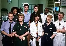 Robson Green was cast as Geordie hospital porter Jimmy Powell following the decision to delocalise the show's setting.[3] Three actors were cast in single-series regular roles. Tam Hoskyns joined the cast as senior house officer Lucy Perry, who was billed as "all books and brains but no practice and compassion".[3] Alex Spencer, portrayed by Belinda Davidson, was introduced as a middle-class student nurse, and Julie Stevens, played by Vivienne McKone, appeared as the overcompensating receptionist.[3]