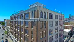 The Catalina Swimwear Building is a six-story, industrial building located in Downtown Los Angeles. The building was designed in 1923 by architect William Douglas Lee and is Lee's first major commission as an independent architect in Los Angeles. The façade has Neoclassical features and articulation that reflect early twentieth-century architecture, more formal than typical for a building intended for manufacturing purposes. The Catalina Swimwear Building is located on the southwest corner of San Pedro and Winston Streets. The building is of reinforced concrete construction, and the upper façade is sheathed in a Flemish Bond brick pattern. Its construction is documented by city of Los Angeles Building Permit #38140, issued for a six-story building with a concrete frame on the southwest corner of San Pedro and Winston Streets.