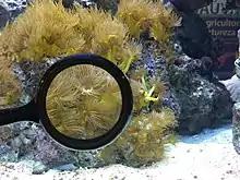 - Marine aquariums: The large aquarium is located in the center of the visitors' circulation space. It contains live specimens of tropical fish and invertebrates such as the clownfish. Around the aquarium magnifying glasses are provided for visitors to observe the animals in more detail. The small aquarium has fewer species and is next to the "Do Veneno ao Remédio" ("From Poison to Medicine") area. This aquarium features a moray eel, a lionfish (poisonous specimen), among others.[15]