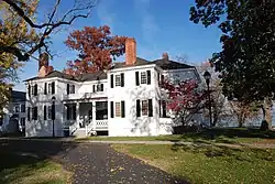 In 1773, Catharine age 6 and Elizabeth age 8, were sent by their father to Glasgow to be educated.[5][6] The girls were educated in Edinburgh, Scotland and London, England boarding schools.[1] Archibald McCall had intended to go with them, but it took longer than he expected to get his business affairs in order.[7] The American Revolutionary War began on April 19, 1775, and McCall sailed to Great Britain that September.[7][lower-alpha 1] Parliament enacted a law that prevented people from freely traveling from Britain to the American colonies during the war.[7]