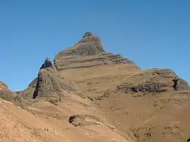 Cathedral Peak (Afrikaans: Cathedralpiek) is a mountain in KwaZulu-Natal, South Africa. It is a 3,004 m (9,856 ft) high free standing mountain in the Drakensberg. The mountain is also known as Mponjwana (Little Horn) by the local Amangwane people.