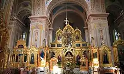 View of the main iconostasis. On the left side altar is St. Jowa Poczajowskiego veiled. To its right, in front of the pillar, the icon of St. Sergius of Radonezh, referred to as the icon of Christ with children.