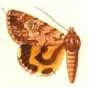 The wingspan is 38–50 mm. Adults are on wing from August to September in one generation depending on the location.