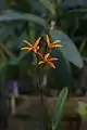 Cattleya cinnabarina is a lithophyte from Brazil, growing at intermediate elevations. The inflorescences emerge from the top of new pseudobulbs, each carrying a dozen or so bright orange flowers.