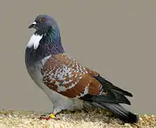 The Cauchois pigeon is a breed of fancy pigeon. Cauchois pigeons, along with other varieties of domesticated pigeons, are all descendants from the rock pigeon (Columba livia). It was also eaten in France.[1]