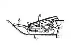 Clarke's machine would use a hydraulic ram to insert cylinders of ammonal explosive about 6 feet (1.8 m) underground.[28] After detonation, the machine would advance into the crater it had just created and repeat the process.[28] The machine would be protected by 6 inches (150 mm) of armoured plate at the front to protect it from its own explosions and similarly at the top and rear as a defence against enemy fire.[28] In one record, Clarke mentions "I envisaged a machine that would by hydraulic means more or less row itself through the ground."[28] The machine's trench would be about 6 by 4 feet (1.8 by 1.2 m).[28][lower-alpha 3]