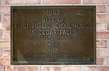 In 1846, Mrs. Jackson Taylor opened the first school in her home at Waterloo Road and East 13th Streets. Early residents recalled seeing parents escort their children to school because Native Americans living in the area were sighted in the woods near the Taylor home. Today, a light red marker commemorates the site of the Taylor home.