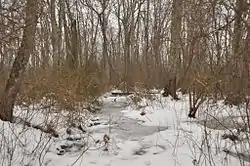 Cedar Swamp Archeological District is a prehistoric and historic archaeologically sensitive area in eastern Westborough, Massachusetts, and extending into the northwest corner of Hopkinton. Cedar Swamp is an area of more than 2,600 acres (1,100 ha) of wetlands that include the headwaters area of the Sudbury River. Archeological surveys of the environmentally sensitive and critical area have identified many Native American sites of interest.[2] It is believed that Native Americans prized wood from the cedar trees that grew in the area.[3] The archeological district, which encompasses much of the Cedar Swamp area, was added to the National Register of Historic Places in 1988.[1]