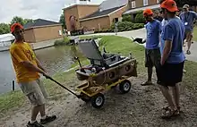 A team from Cedarville University preparing to launch an autonomous surface boat in 2013 as part of a competition off campus.