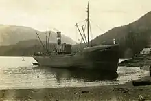 View of Celestial Empire on the beach at Kyuquot on Vancouver Island, 1916