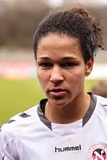 Célia Šašić (née Okoyino da Mbabi; German pronunciation: [ˈtseːlja ˈʃaːʃɪtʃ]; born 27 June 1988) is a German former footballer who played as a striker for SC 07 Bad Neuenahr, 1. FFC Frankfurt and the Germany national team before retiring in 2015.