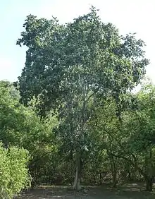 Celtis africana, the white stinkwood, is a deciduous tree in the family Cannabaceae. Its habit ranges from a tall tree in forest to a medium-sized tree in bushveld and open country, and a shrub on rocky soil. It occurs in Yemen and over large parts of Africa south of the Sahara.[4] It is a common tree in the south and east of southern Africa, where the odour given off by freshly-cut green timber is similar to that of Ocotea bullata or black stinkwood.[5]