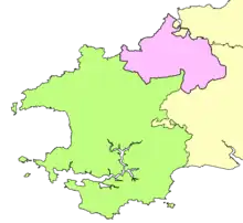 Cemaes Rural District was formed in 1934 by the amalgamation of St Dogmells Rural District and Llanfyrnach Rural District. The council was administered from Cardigan, outside its area.[1][2]