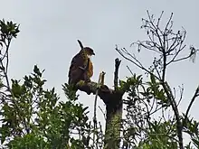 The Central American red-tailed hawk (Buteo jamaicensis costaricensis) is a subspecies of red-tailed hawk resident from Nicaragua to Panama. This subspecies is relatively small. The wing chord of males can range from 368 to 391 mm (14.5 to 15.4 in), averaging 372.7 mm (14.67 in), and, in females, it ranges from 393 to 427 mm (15.5 to 16.8 in), averaging 401.9 mm (15.82 in). Additionally, males and females average 213.2 and 230 mm (8.39 and 9.06 in) in tail length, 88.6 and 86.9 mm (3.49 and 3.42 in) in tarsal length and 26 and 26.7 mm (1.02 and 1.05 in) in culmen length.[1][2][3] This race may average around 900 g (2.0 lb).[4] This subspecies is arguably the most handsomely colored in typical adult plumage. This subspecies is dark brown above and heavily pigmented dorsally, the white of the breast contrasting with a deep rufous abdominal band which contains black streaks and spots. Meanwhile, the flanks, wing linings and sides are an unbarred deep rufous. In some birds, the rich rufous color continues to the underside. The chest is much less heavily streaked than in northern migrants western red-tailed hawk (B. j. calurus) to Central America. Unlike other Central American races of red-tailed hawk, there seems to be no dark morph in this subspecies.[1][5][6]