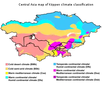 Central Asia map of Köppen climate classification.