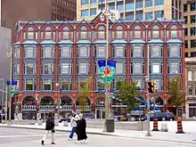 Central Chambers is a building at the corner of Elgin Street and Queen Street in Ottawa that is a National Historic Site. It is located at 42 to 54 Elgin Street, next to Bell Block. It faces the Canadian War Memorial at Confederation Square. Central Chambers was built between 1890 and 1893[1] and designed by John James Browne of Montreal, an example of Queen Anne Revival commercial architecture. Formerly serving as an office for the Canadian Atlantic Railway, it now houses the National Capital Commission.[2]