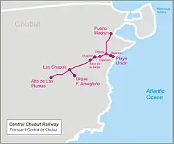 The Central Chubut Railway (in Spanish: Ferrocarril Central del Chubut) was a British-owned company that built and operated a 1,000 mm (3 ft 3+3⁄8 in) metre gauge railway line in the Argentine province of Chubut in the Patagonia region at the end of the 19th. century.