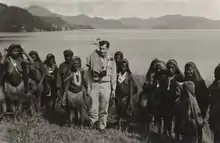 The trading centre of the region is Kipia, led by a leader named Naowa, who received the title of king from Lamora, Namatota (Koiwai) King. Kipia led a confederation of Kamoro villages called Tarya We, along with Poraoka, Maparpe, Wumuka, Umar and Aindua. They co-operated because the region lacked sago and intimidated the more fertile region to the east with canoes and minaki (firearms) received from trade. Meanwhile, in the east there was a major war called the Tipuka War where Tipuka village was destroyed by Koperapoka assisted by a coalition of Mware, Pigapu, Hiripau and Miyoko which was thought to be revenge for Tipuka kidnapping people for trade.[10] This trade relationship and influence from the Moluccas gradually disappeared with the strengthening of Dutch colonialism, and the influx of Catholic missionaries and Chinese traders.[9][10]