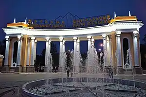 Central Park, also known as Gorky Park, is an urban park located in the Medeu District of Almaty. The park includes different types of trees such as elm, oak, aspen, maple, pine, spruce, poplar, and birch; artificial water reservoirs, attractions such as a water park, movie theater, sports complex, cultural venues, and public catering establishments. There are also children's attractions, which include a children's railway, an aqua park and other entertainment venues.[1][2][3] In 2013, the territory of the Central Park is only 42 hectares, while in 1983, it was over 100 hectares.[4]