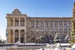 Construction for a new post office began in 1914, was halted by World War I, and was eventually completed in 1941.[1] It was deliberately destroyed later that year by Soviet forces in an explosion during the 1941 demolition of Kyiv, once Nazi forces had entered the city following the Red Army's retreat.[1][4] The current building was built between 1952 and 1958.[1]