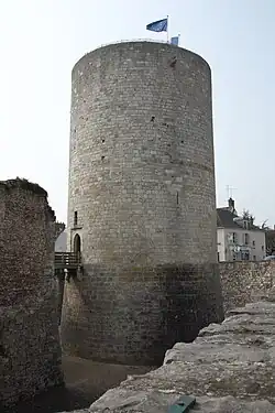 The donjon, the major defensive component of the castle, measures approximately 30 metres in height and 13.6 metres in diameter. It is typical of the donjons being built by King Philip II Augustus of France at this time, like at Rouen and other French nobility throughout the 13th century.