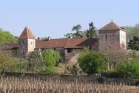 The castle of Gevrey-Chambertin, was certainly considerably revised in the second half of the 13th century, and was, during St Bernard lifetime, and even probably slightly earlier, a priory belonging to the Abbey of Cluny.[3][4] Hughes, bishop of Auxerre, and his sister Maheldis – both descendants of Manasses of Vergy, a powerful leader of Burgundy in the 9th century, in 1015 and 1019 donated the "CURTIS" called Gevrey to the monastery of Cluny of which abbot was then St Odilon.[5]