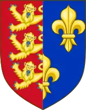- ↑ The Goulaine coat-of-arms, parting England and France, accompanied by the motto, "De cettuy-cy, de cettuy-là, j'accorde les couronnes,"— "Of this one and that I award the crowns"— is recorded in Pol Potier de Courcy, Nobiliaire et Armorial de Bretagne, who records that Jean de Goulaine, Captain of Nantes, was sent by Geoffroy, duke of Brittany, to arrange peace between Henry II of England and Philip Augustus of France in 1180, occasioning the arms and motto carried by the Goulaine since; see also Saint-Allais 1816.