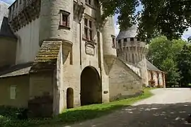 What remains of the château, the most imposing of the period in Deux-Sèvres, is the building which joins the two towers and the chapel. The left wing has been destroyed and the right wing is a later construction. The enceinte was demolished between 1820 and 1824 and the sculptures have disappeared.[3] The orangery dates from 1854.