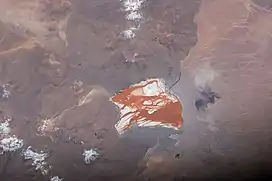 Laguna Colorada and Ch'iqlla (above it) as seen from the ISS