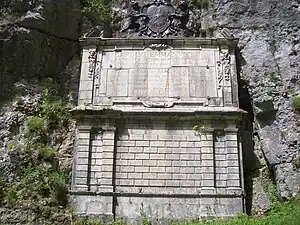Stele near Saint-Christophe in Savoie, France, at the southern end of the Chaîne de l'Épine (45°26′57.0″N 5°47′13.3″E / 45.449167°N 5.787028°E / 45.449167; 5.787028), commemorating the opening of Charles Emmanuel II of Savoy's royal road from Turin to Lyon in 1670.