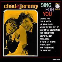 Chad & Jeremy Sing for You is the second studio album by the English duo Chad & Jeremy.[2] It was released in the United States in January 1965, and it was their last album to be released under World Artists.[3] It is not to be confused with the British release of the same name, which contains different tracks.[4] Another take on "What Do You Want With Me" was released on their next album, Before and After.