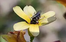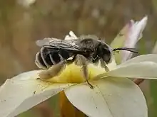 • Other Chalepogenus species (e.g. C. cocuccii) collect oil from flowers that possess epithelial elaiophores, by sweeping floral oil with their compound comb of setae. These species have a non-bulging pad.[3][4][10]