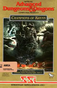 Champions of Krynn is role-playing video game, the first in a three-part series of Dragonlance Advanced Dungeons & Dragons "Gold Box" games. The game was released in 1990.[2] The highest graphics setting supported in the DOS version was EGA graphics. It also supported the Adlib sound card and either a mouse or joystick.