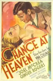 Chance at Heaven is a 1933 American pre-Code drama film directed by William A. Seiter and written by Julien Josephson and Sarah Y. Mason based on a 1932 short story of the same name by Vina Delmar. The film stars Ginger Rogers, Joel McCrea, Marian Nixon, Andy Devine and Lucien Littlefield. It was released on October 27, 1933 by RKO Pictures.[1][2][3]