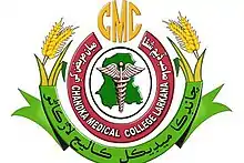 Chandka Medical College Sindhi: چانڈکا طبی ڪاليج, or CMC),[1] established on 20 April 1973,[2] is a public sector medical college located in Larkana, Sindh, Pakistan. It also provides post graduate training to doctors. It provides tertiary medical care facilities to upper Sindh and half of the Balochistan, and medical education for the students of Larkana Division.
